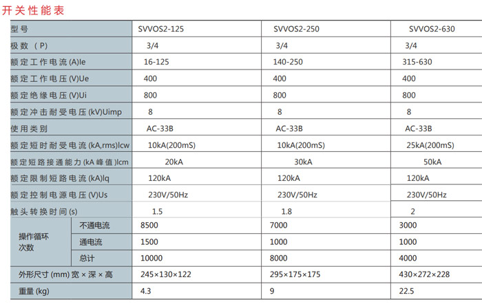 SVVOS2系列產品屬于 PC 級自動轉換開關電器,主要用于交流 50/60Hz,額定電壓 400V 及以下,額定工作電流至 630A 的兩路中性點接地電源系統(tǒng)中,因一路電源發(fā)生異常而進行電源之間的轉換,保證其 供電的可靠性和安全性。