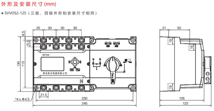 顯示控制器與轉換控制器分體設置,顯示控制器既可以安裝在開關本體面板上(一體式),也可以單獨安裝到柜門(分體式),方便用戶對自動轉換開關狀態(tài)的檢測和控制。
